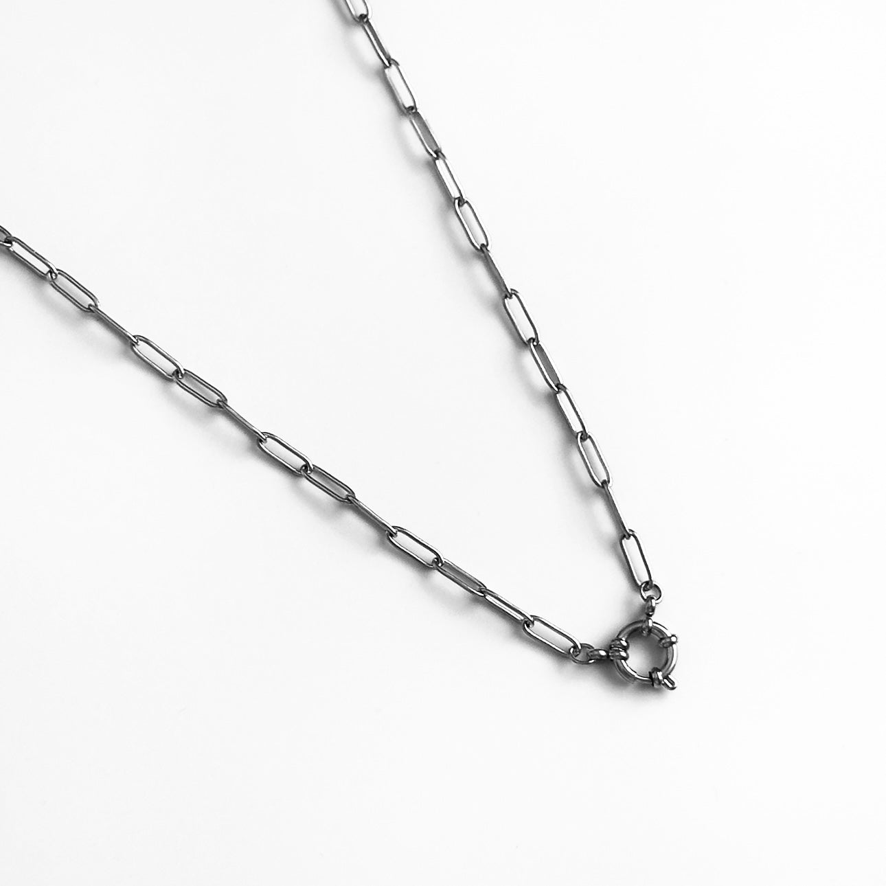 This edgy paperclip clasp chain is expertly designed to securely hold your charms. Wear everywhere because this chain is completely waterproof and everyday durable. Offered in both gold and silver, it adds a personal touch to any accessory. Elevate your charm game with this versatile and reliable chain.